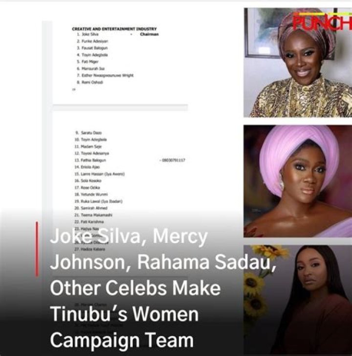 Nigerians Are Disappointed In Joke Silva, Mercy Johnson, And Others Who Have Been Named To Tinubu’s Women Campaign Team.