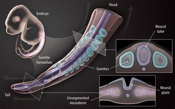 Somite, in embryology, one of a longitudinal series of blocklike segments into which the mesoderm, the middle layer of tissue, on either side of the embryonic spine becomes divided. The term somite is also used more generally to refer to a body segment, or metamere, of a segmented animal.Click to see full answer. Similarly, what are the somites?The somites (outdated term: primitive segments) are a set of bilaterally paired blocks of paraxial mesoderm that form in the embryonic stage of somitogenesis, along the head-to-tail axis in segmented animals.Subsequently, question is, how many somites does a human embryo have? In humans 42-44 somite pairs 9 – 13 are formed along the neural tube. These range from the cranial region up to the embryo’s tail. Several caudal somites disappear again, which is why only 35-37 somite pairs can be counted in the end. Subsequently, one may also ask, what tissues do somites give rise to? Somites are precursor populations of cells that give rise to important structures associated with the vertebrate body plan and will eventually differentiate into dermis, skeletal muscle, cartilage, tendons, and vertebrae.What is segmentation in embryology?Segmentation in biology is the division of some animal and plant body plans into a series of repetitive segments. This article focuses on the segmentation of animal body plans, specifically using the examples of the taxa Arthropoda, Chordata, and Annelida.
